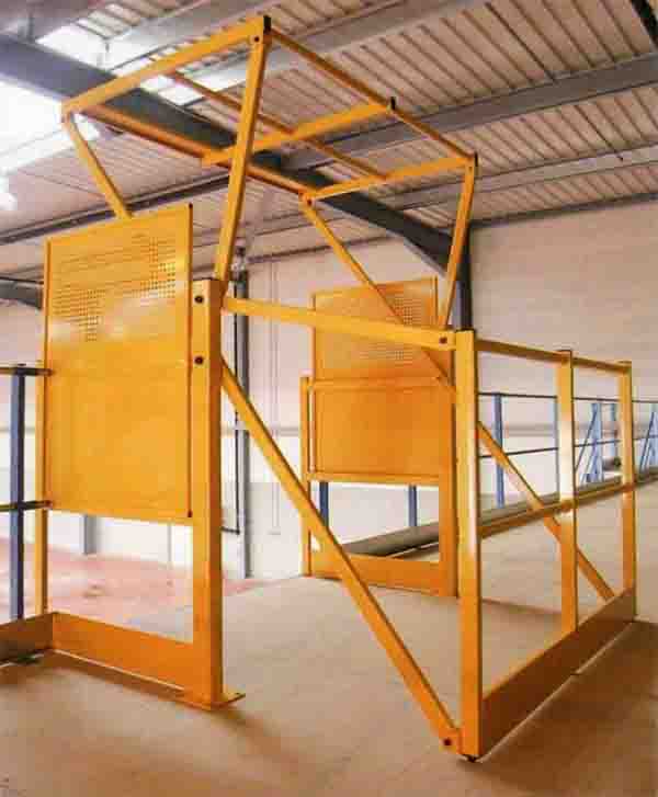 Ein Sturzschutzgitter benötigen Sie auf der Bühne wenn Sie Ware lagern die durch oder über das Geländer geschoben werden kann.