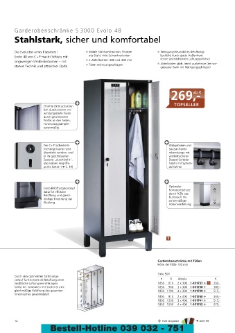 langweiligen Umkleideräumen – mit ■ 2 Abteilbreiten: 300 und 400 mm ■ Abteilböden glatt, leicht auskehrbar (bei vor-