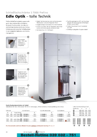 Prefino-Schließfachschränke passen sehr ■ Stabile Stahlkonstruktion mit multifunktionalem ■ Türöffnungsbegren zer 90° und Anschlag-