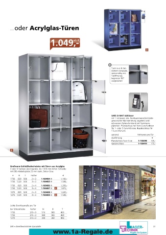 Schließfachschränke mit doppelwandigen Türen Großraum-Schließfachschränke mit einwandigen, Großraum-Schließfachschränke mit Türen aus Acrylglas