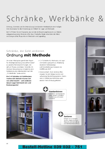 Um einen Arbeitsplatz gemäß den Regeln ■ C+P Schränke für Werkstatt und Lager