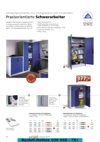 sicher – mit Schwerlastschränken von C+P. ■ Hohe Traglast pro verzinktem Einlege boden: 110 kg