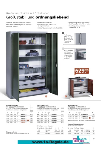 Schränke mit Wertfach und Schubladen Werkzeugschränke mit Schubladen Schubladen-Innenmaße Großraumschränke Großraumschränke Beistellschränke
