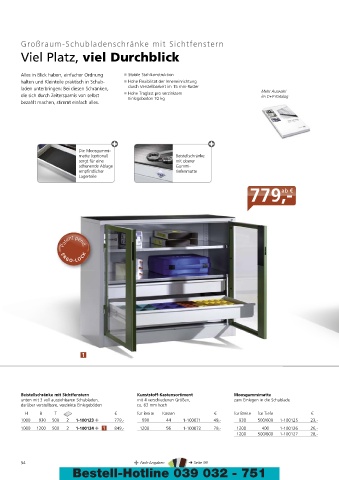 Großraum-Schubladenschränke mit Sichtfenstern