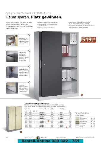 Wenig Platz im Büro? Mit Asisto Schiebe- ■ Korpus in stabiler Stahlkonstruk tion ■ Verschiedene Fronten-Kombinationen