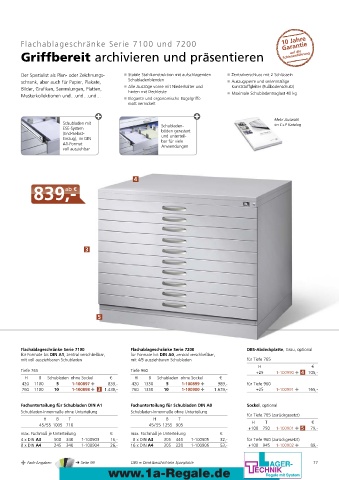 Die Klassiker mit durchgehender, inte- ■ Stabile Stahlkonstruktion ■ Serienmäßig mit Kunststoffgleitern Der Spezialist als Plan- oder Zeichnungs- ■ Stabile Stahlkonstruktion mit aufschlagenden ■ Zentralverschluss mit 2 Schlüsseln