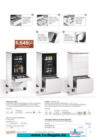 Die Kühlschrank-Caddies sind die perfek- ■ Hervorragende Mobilität durch 4 Maxi- ■ Voll ausziehbare Schubladen mit End-Selbst- schub kasten aus Tassen und Tellern und