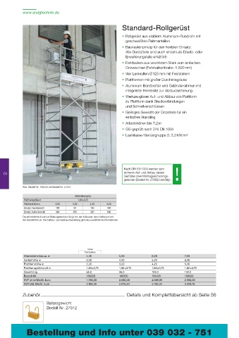 n.z. = nicht zulässig der Gerüsthöhe ab. Die Aufbau- und Gebrauchsanleitung gibt dazu ausführliche Informationen.