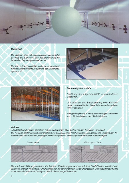 fahrenden Regalen gewährleistet ist.