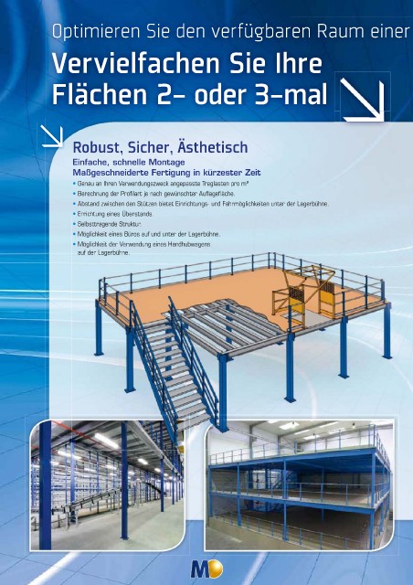 • Abstand zwischen den Stützen bietet Einrichtungs- und Fahrmöglichkeiten unter der Lagerbühne.